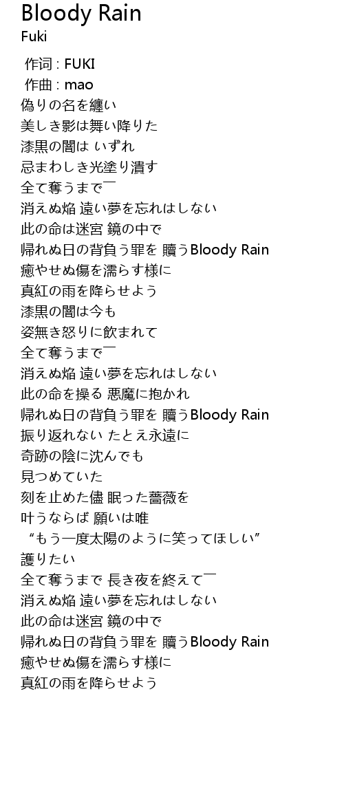 | [02:12.898] | 帰れぬ日の背負う罪を 贖うBloody Rain |