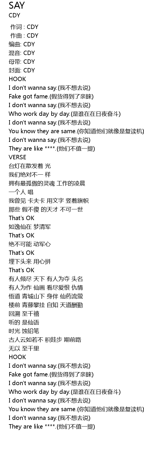 | [00:00.000] | 作词 : CDY |