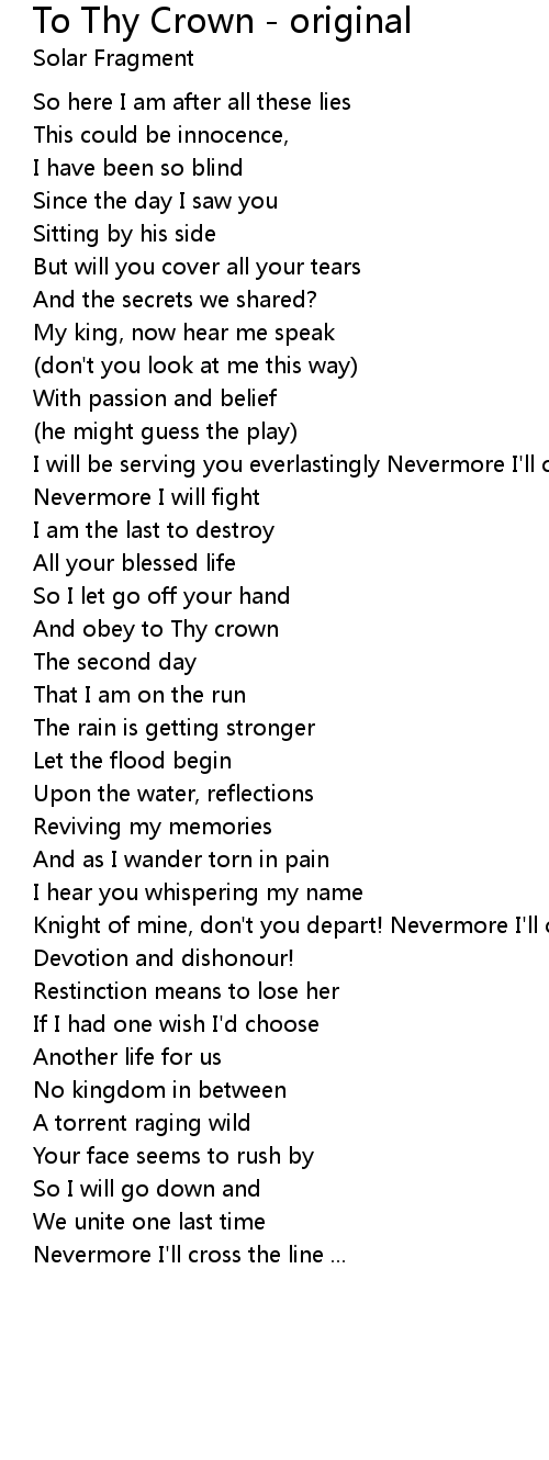 Knight of mine, don't you depart! Nevermore I'll cross the line ... |