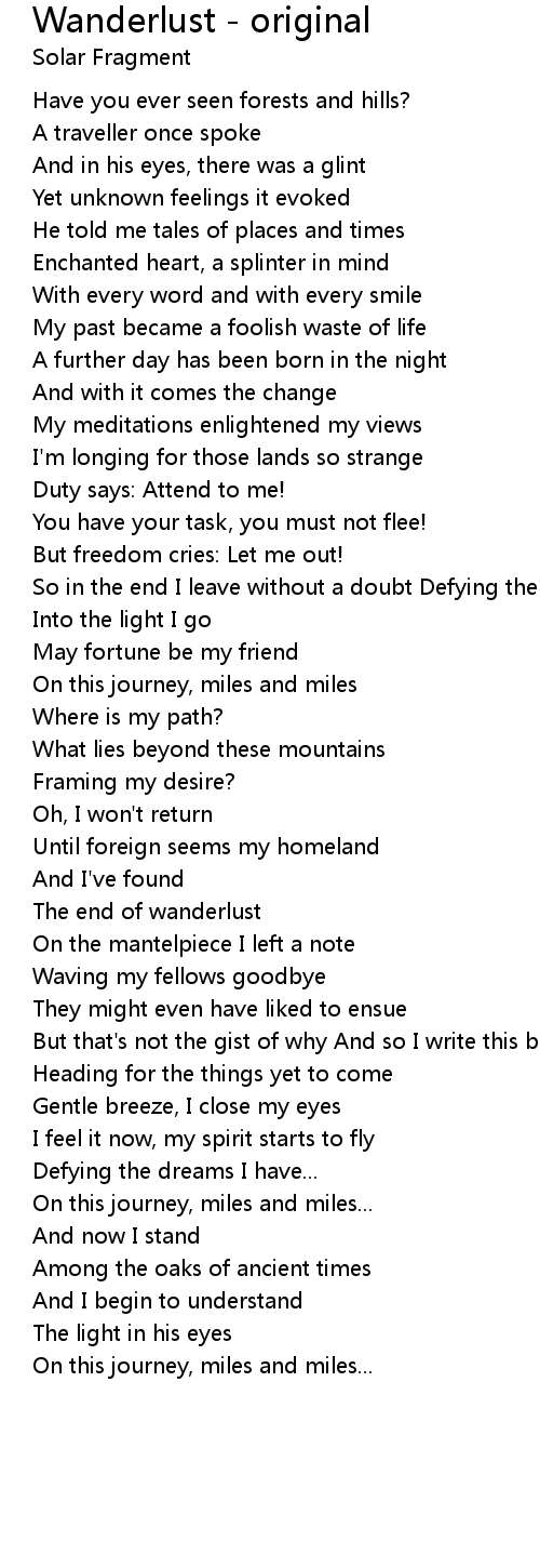 The end of wanderlust |