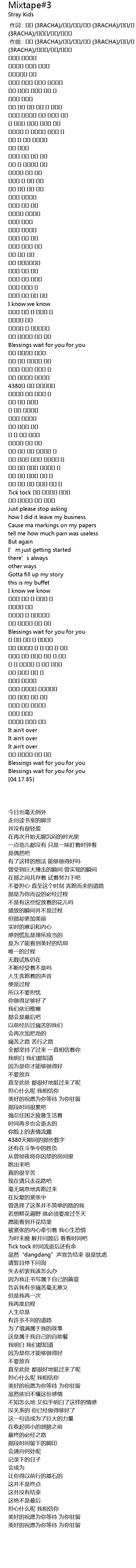 | [00:00.000] | 作词 : 방찬 (3RACHA)/우진/리노/창빈 (3RACHA)/현진/한 (3RACHA)/필릭스/승민/아이엔 |