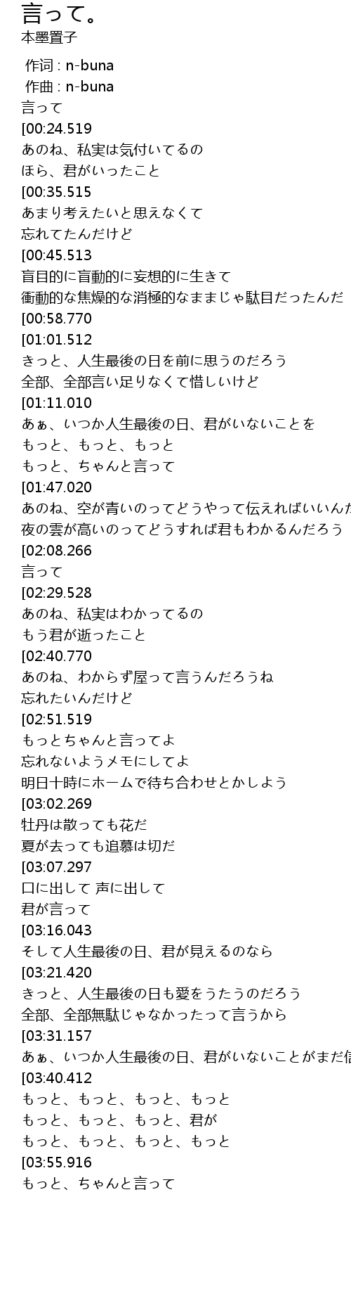 | [00:00.000] | 作词 : n-buna |