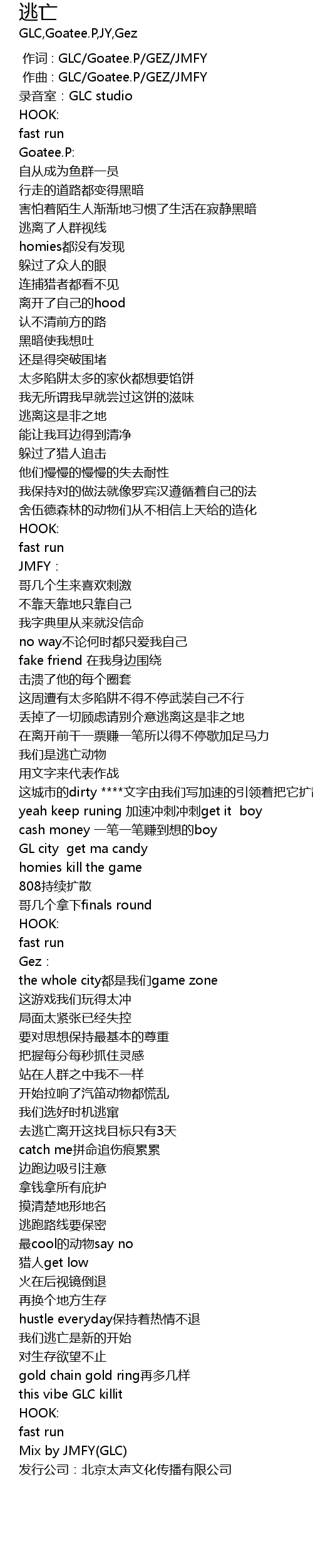 | [00:00.000] | 作词 : GLC/Goatee.P/GEZ/JMFY |