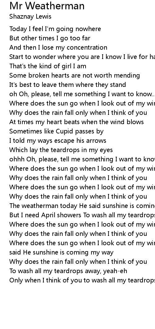 The weatherman today He said sunshine is coming my way my |