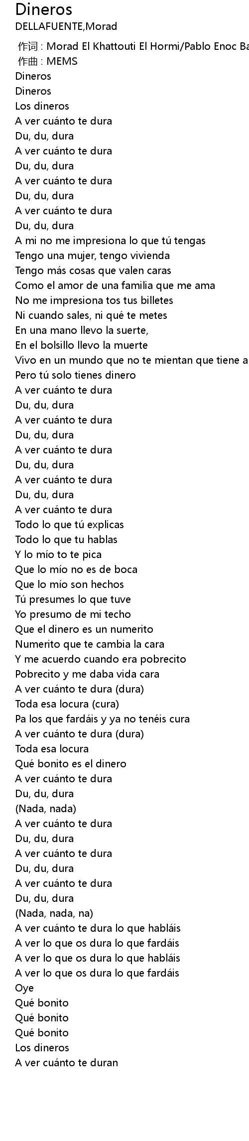| [01:49.56] | A ver cuánto te dura (dura) |