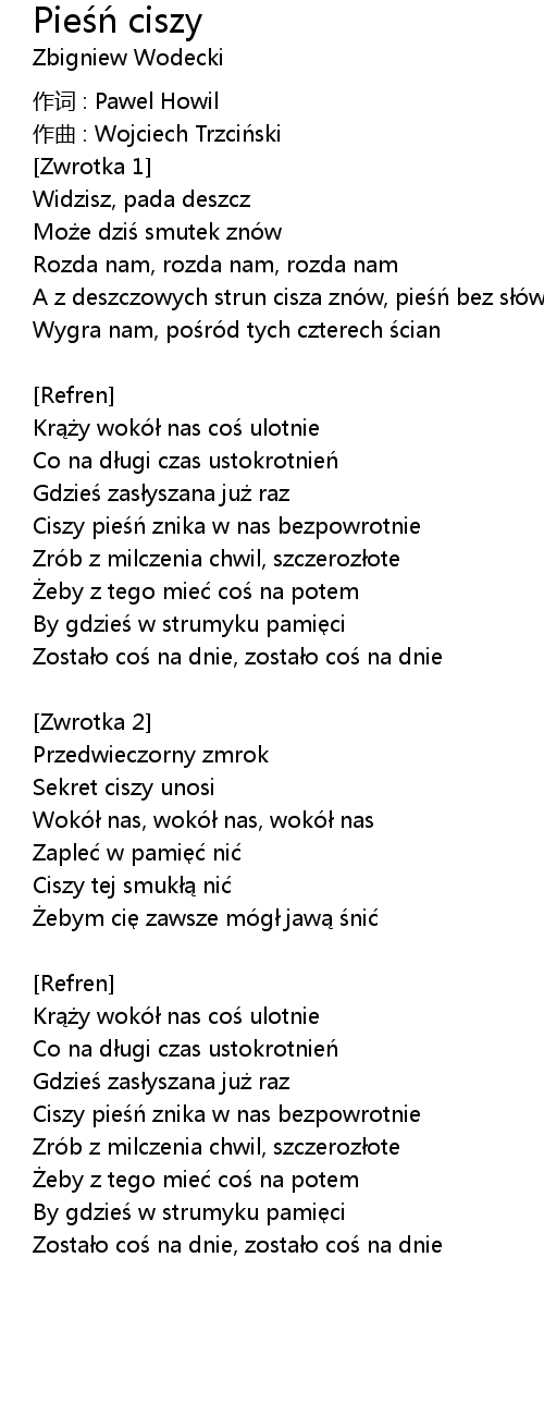 | Ciszy pieśń znika w nas bezpowrotnie | |