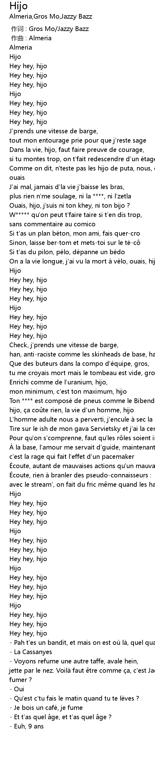 | [00:38.48] | Comme on dit, n'teste pas les hijo de puta, nous, on déteste ça, ouais |
