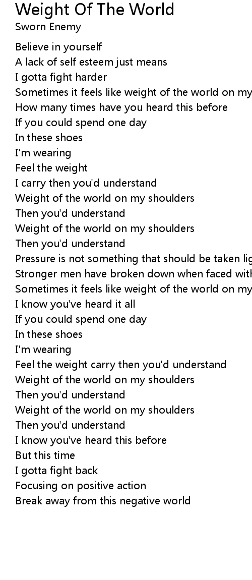 Sometimes it feels like weight of the world on my shoulders |