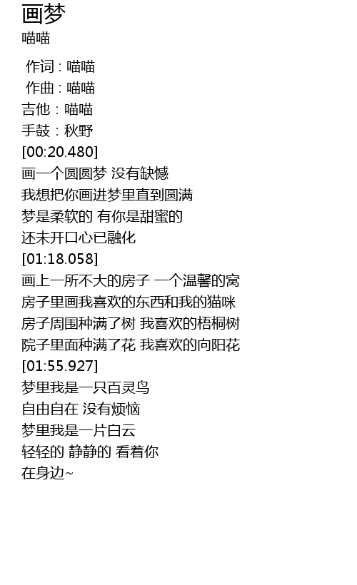 | [00:20.813] | 画一个圆圆梦 没有缺憾 |