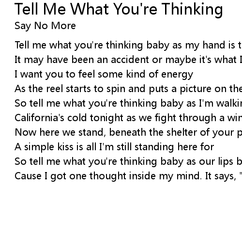Tell me what you're thinking baby as my hand is touching yours |