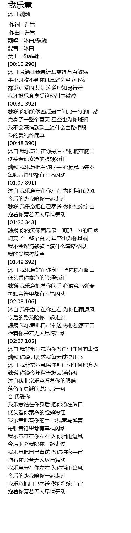 | [02:36.105] | 魏巍:你说只要求我每天过得开心 |
