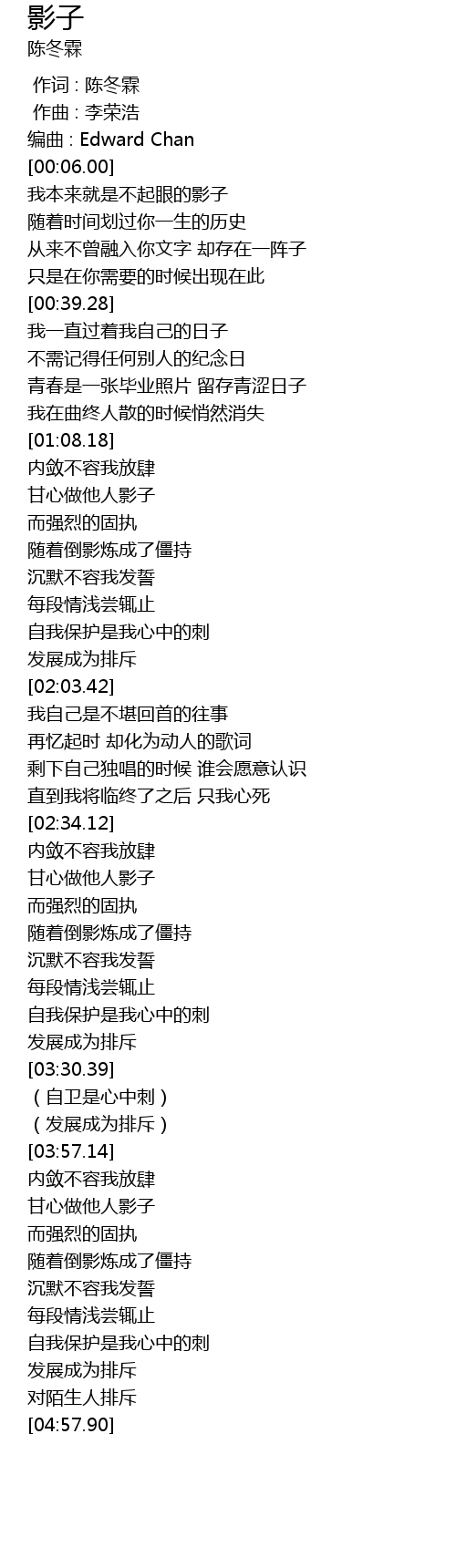 | [04:04.78] | 甘心做他人影子 |
