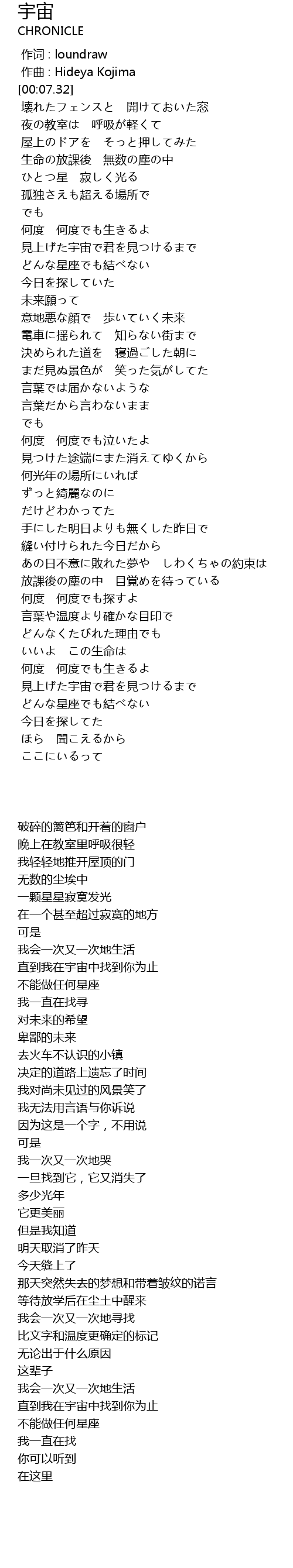 | [00:57.12] | 見上げた宇宙で君を見つけるまで |