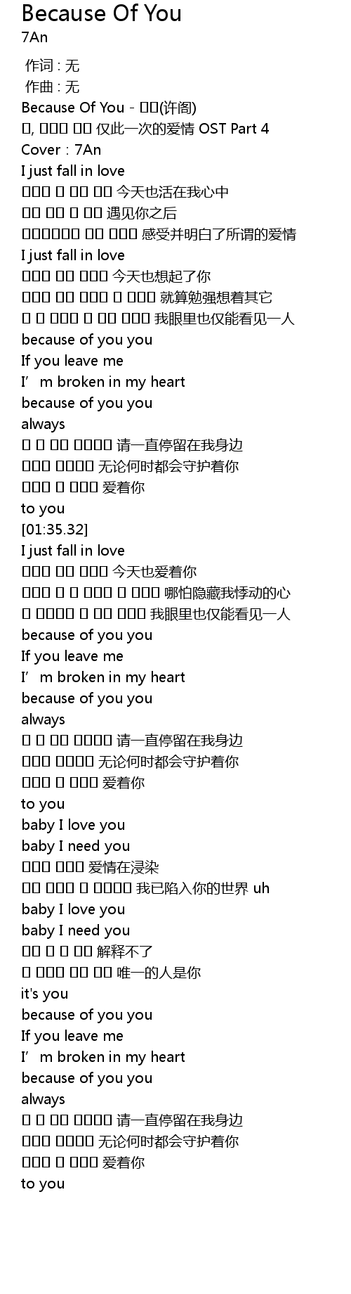 | [00:00.00] | Because Of You - 허각(许阁) |
