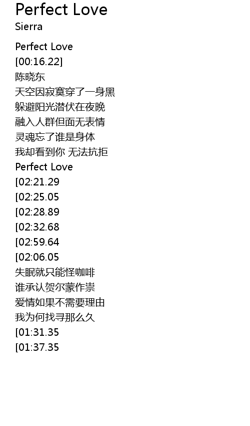| [03:08.08][02:59.64][02:52.14][01:54.60][01:04.55] | your perfect love |