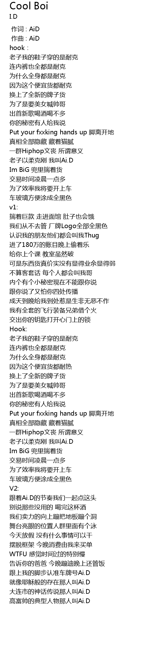 | [02:00.009] | 老子以柔克刚 我叫Ai.D |