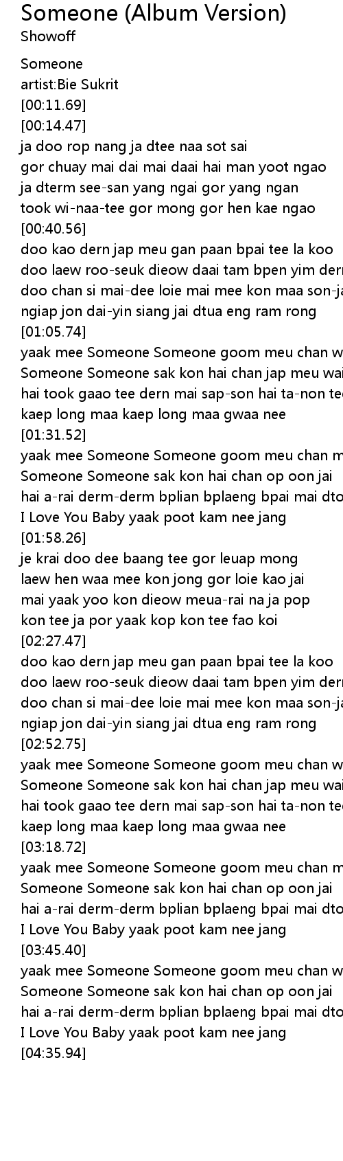 | [04:15.85] | Someone Someone sak kon hai chan op oon jai |