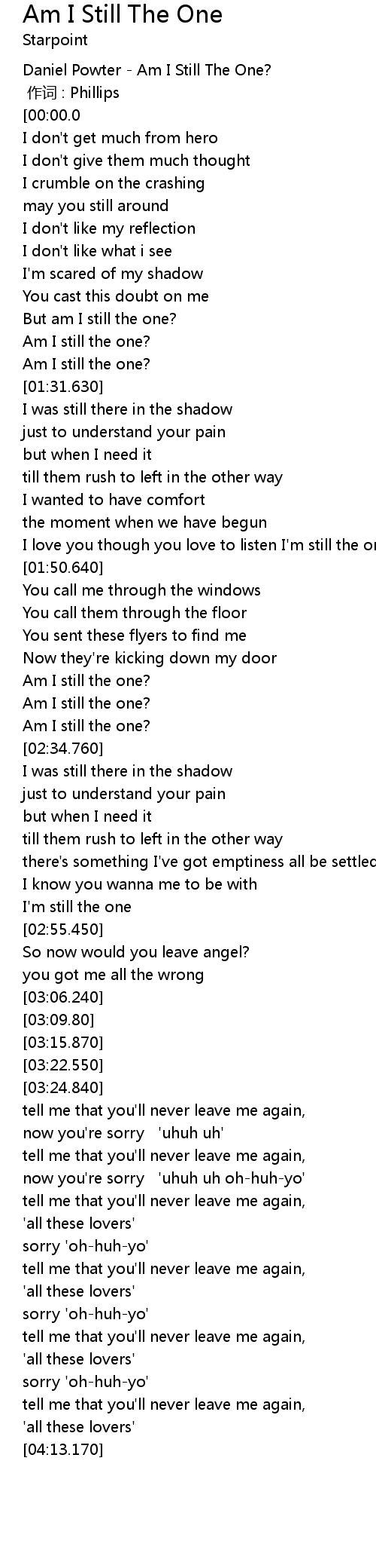 | [00:-2.00] | Daniel Powter Am I Still The One? |