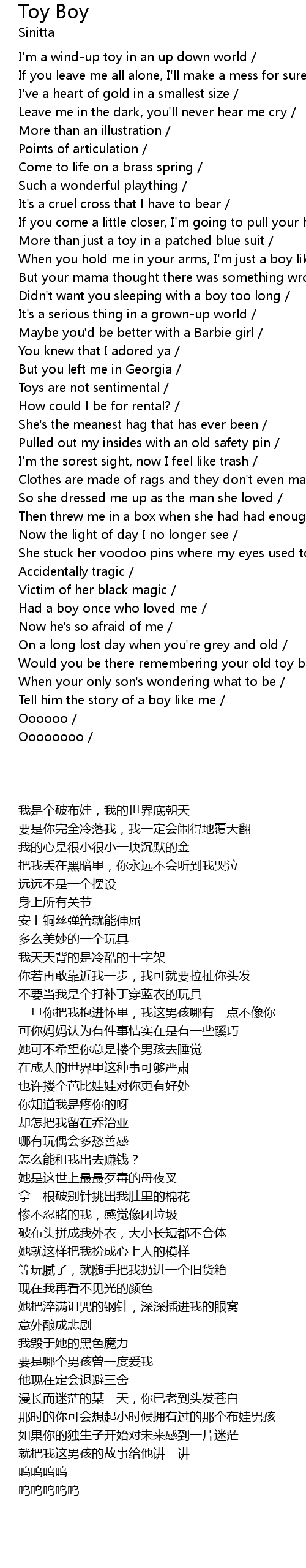 | [02:22.050] | Would you be there remembering your old toy boy? / |