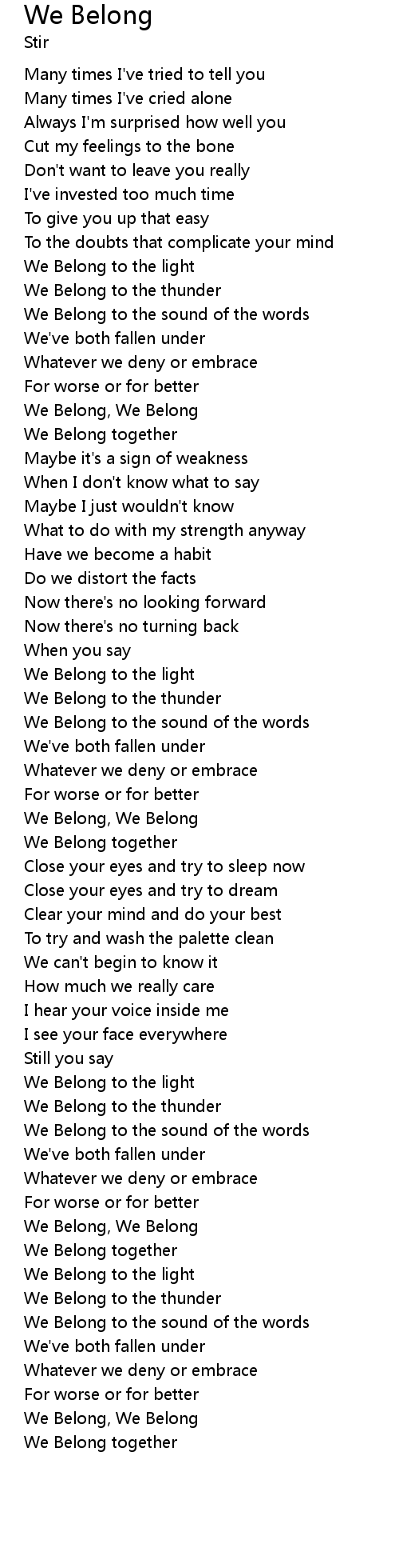 | [02:56.34] | We Belong, We Belong |