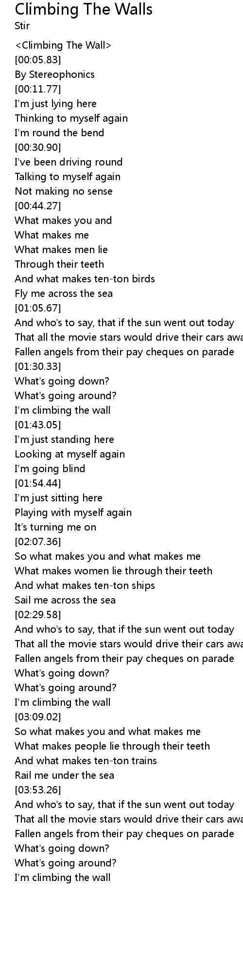 | [03:04.76] | I'm climbing the wall |