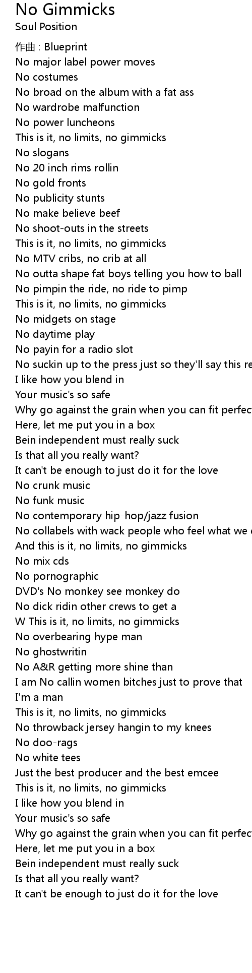 | No suckin up to the press just so they' ll say this record' s hot | |