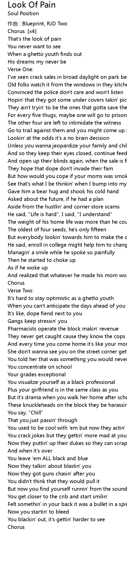 | Felt somethin' in your back it was a bullet in a spinal column | |