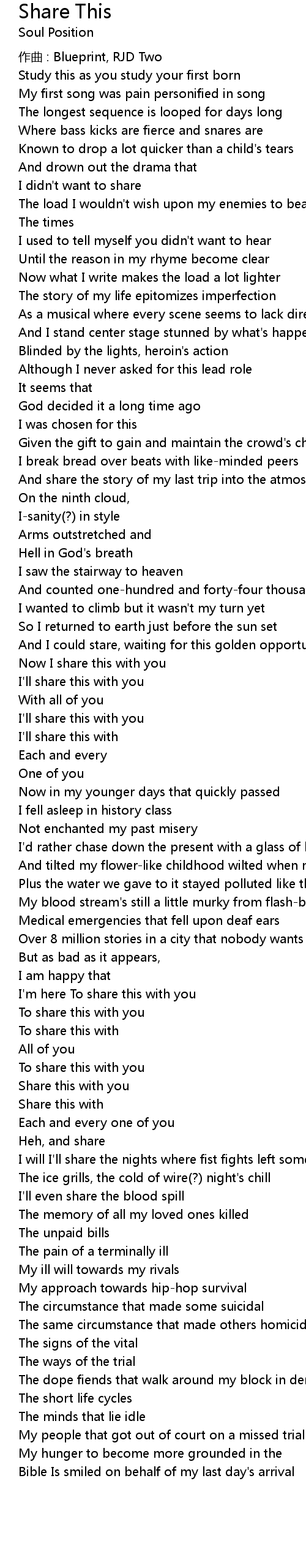 | I will I' ll share the nights where fist fights left somebody' s body lying still | |