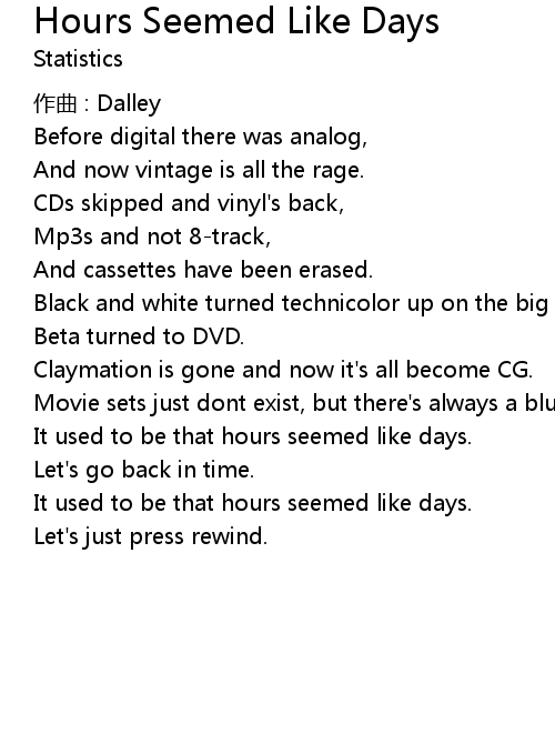 | Song | Hours Seemed Like Days |
