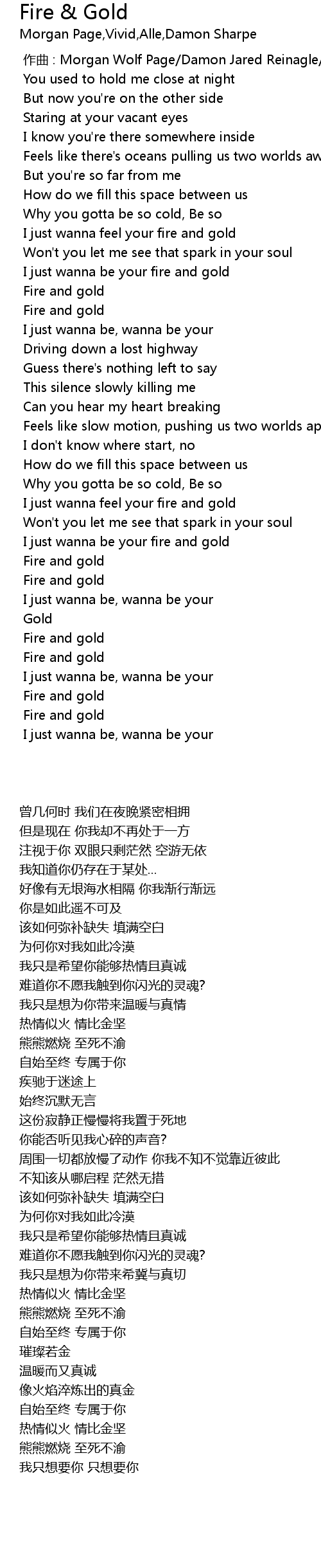 | [00:34.255] | I just wanna feel your fire and gold |