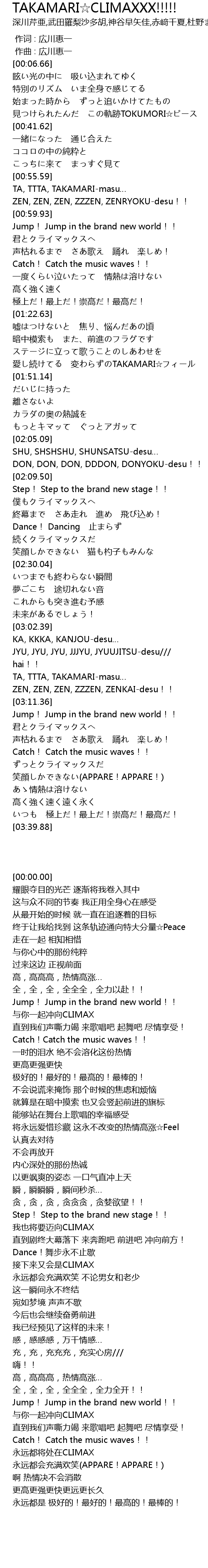 | [03:06.92] | TA, TTTA, TAKAMARI-masu… |