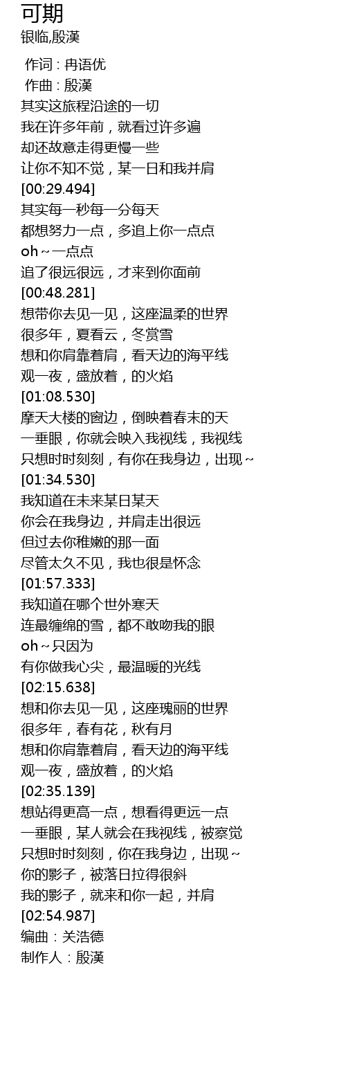 | [02:15.888] | 想和你去见一见,这座瑰丽的世界 |
