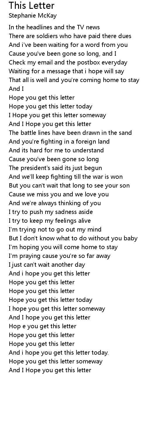 And I hope you get this letter |