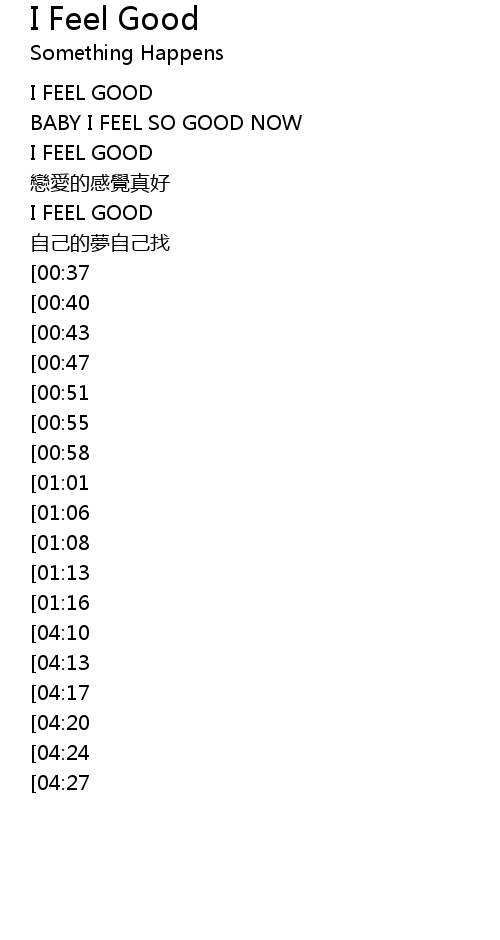 | [04:47][04:24][03:33][03:10][01:34] | I FEEL GOOD |