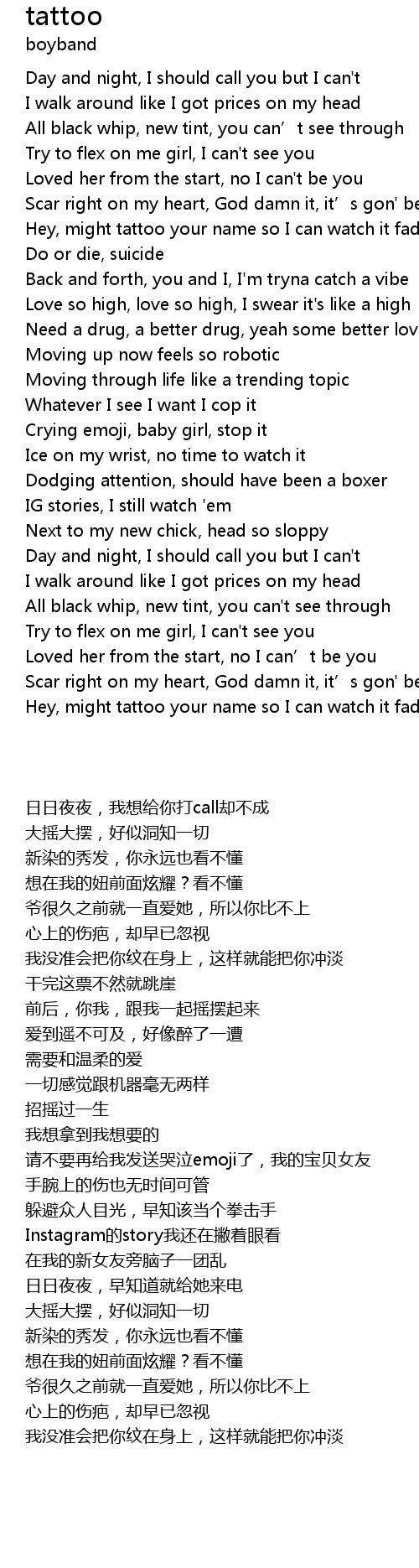 | [01:24.44] | Hey, might tattoo your name so I can watch it fade away |