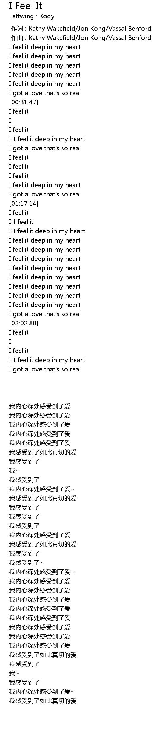 | [01:31.43] | II feel it deep in my heart |