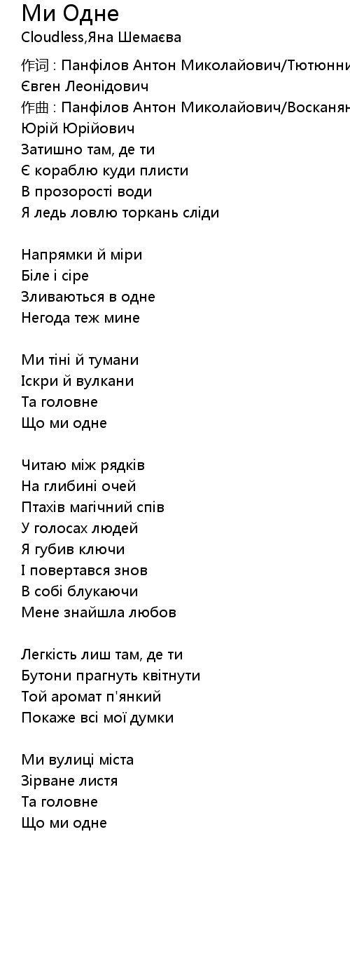 作词 : Панфілов Антон Миколайович/Тютюнник Євген Леонідович |
