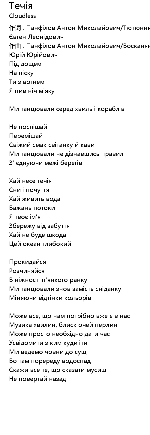 作词 : Панфілов Антон Миколайович/Тютюнник Євген Леонідович |