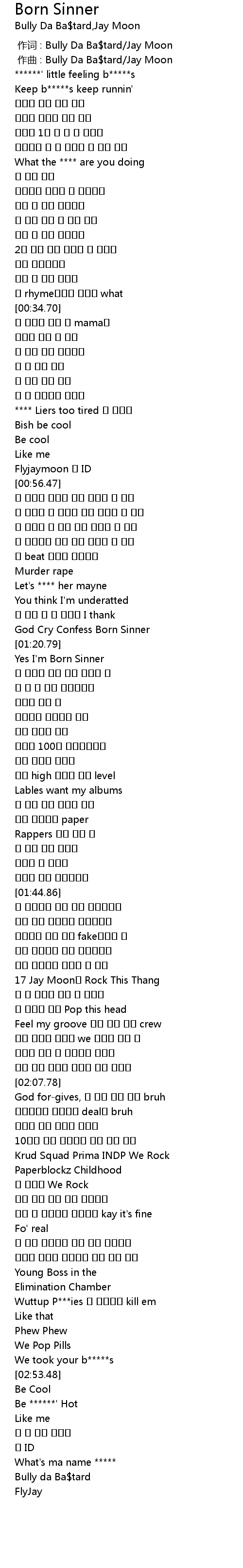 | [00:00.000] | zuo ci : Bully Da Ba tard Jay Moon |