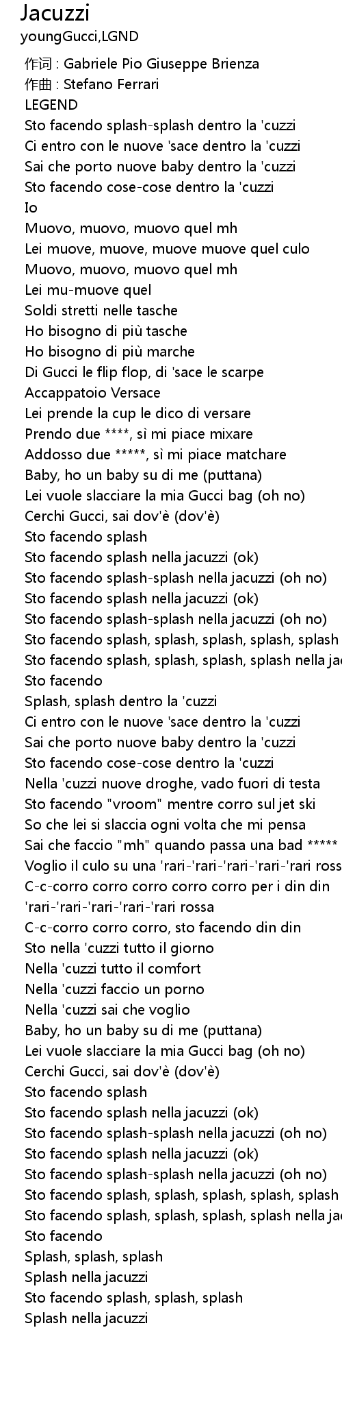 | [01:33.594] | Sto nella ' cuzzi tutto il giorno |