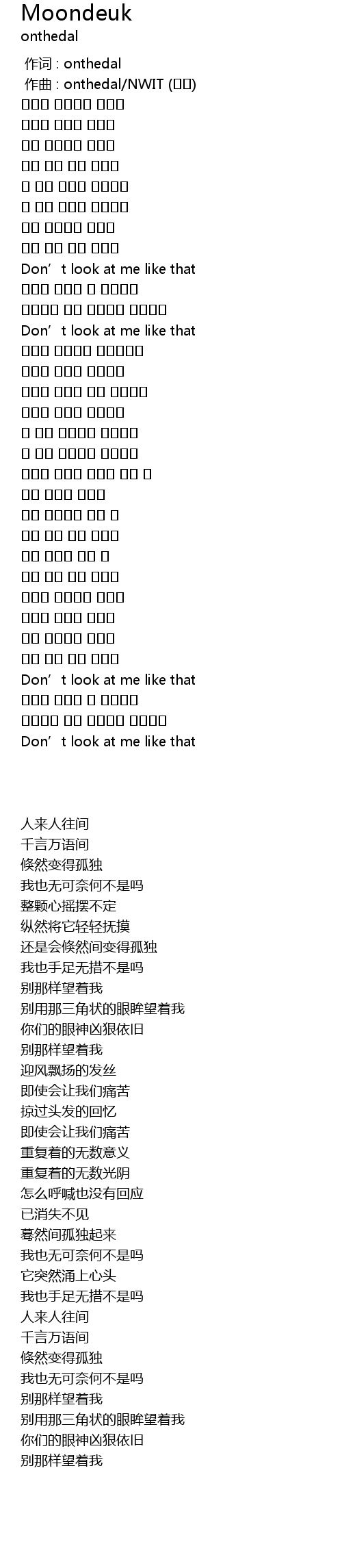 | [00:01.000] | 作曲 : onthedal/NWIT (느윗) |