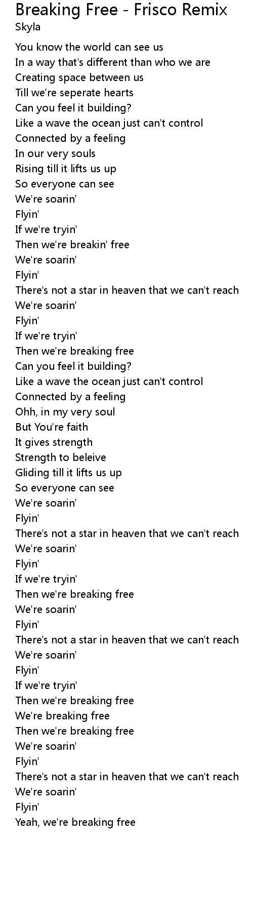 Breaking Free - Frisco Remix Lyrics