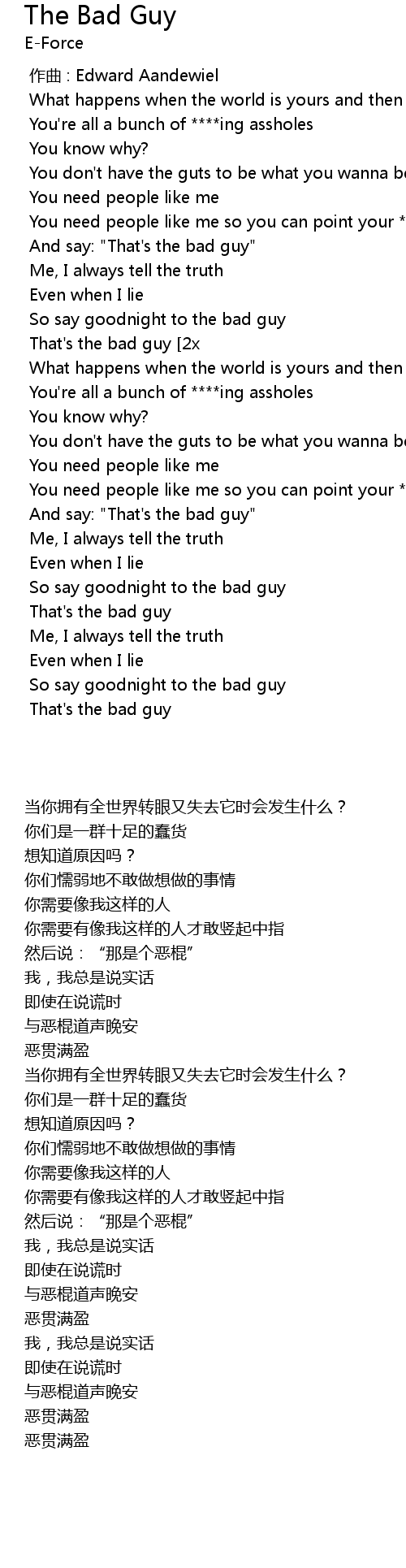 | [00:20.799] | You need people like me so you can point your ****ing fingers |