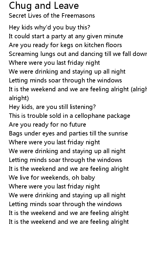 It is the weekend and we are feeling alright (alright, alright, alright, alright) |