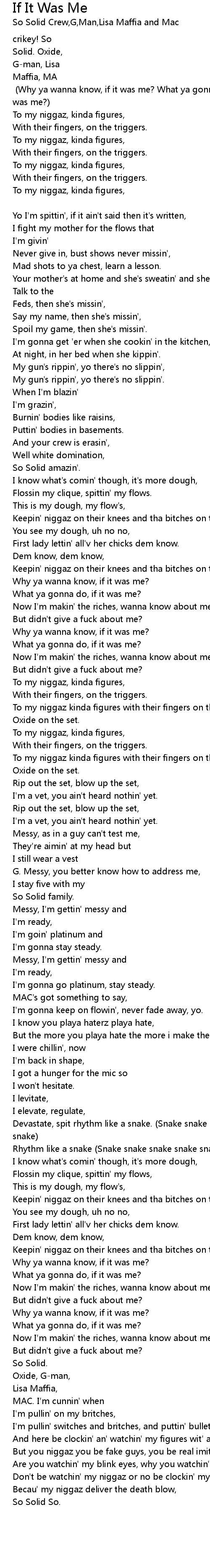 Why ya wanna know, if it was me? |