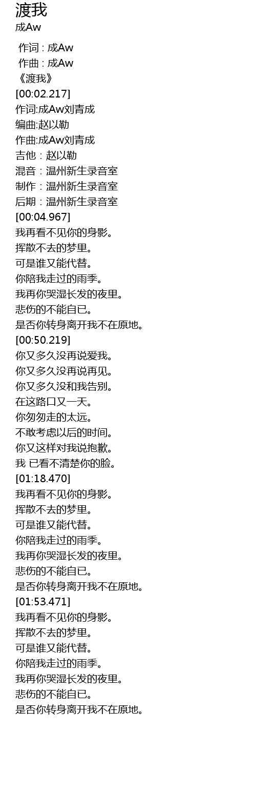 | [00:00.000] | zuò cí : chéng Aw |