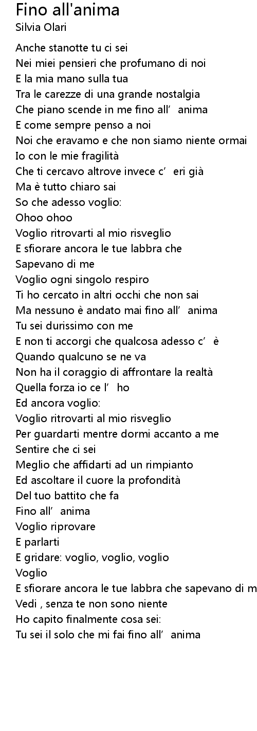 | Song | Fino all'anima |