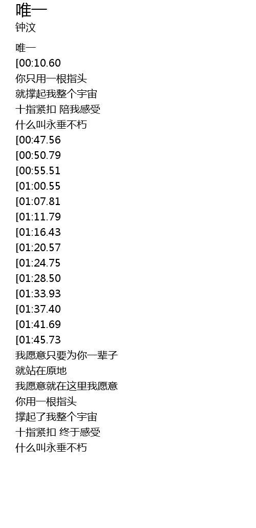 | [00:00.00] | 唯一 |