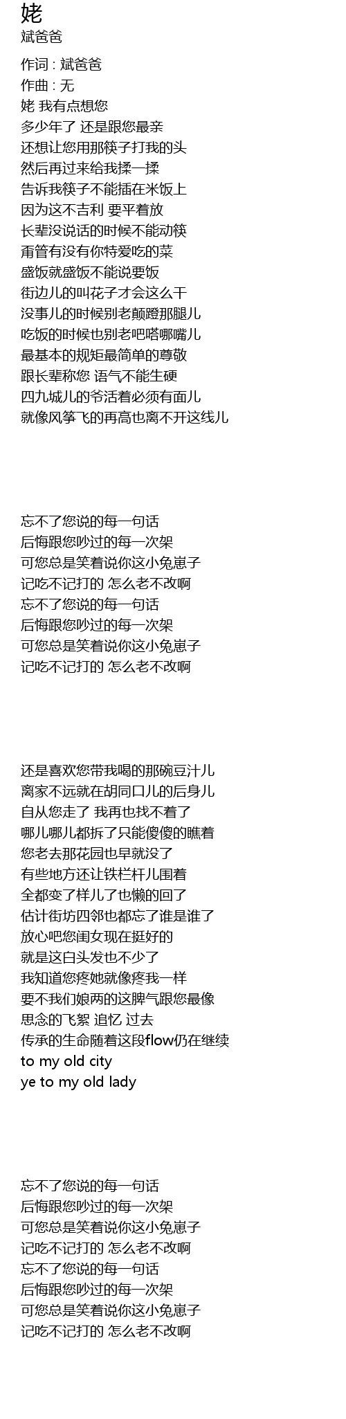 | lǎo wǒ yǒu diǎn xiǎng nín | |