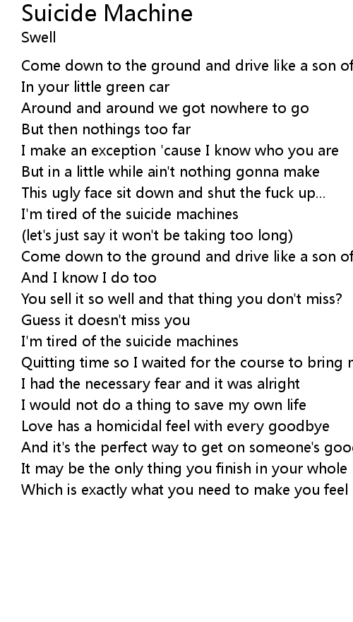 | I'm tired of the suicide machines | |